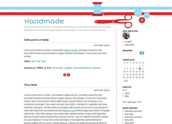 Para os fãs de crafts e ofícios, temos agora o Handmade, um template costurado pela nossa Claudia Vieira.