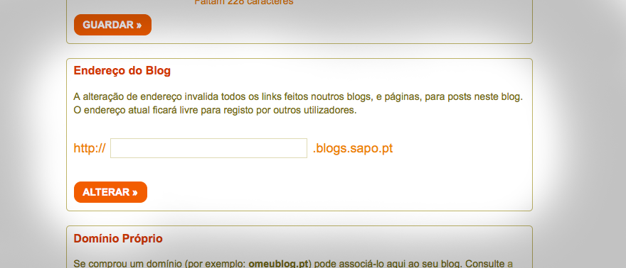 Agora já podem mudar o endereço do vosso blog SAPO de forma fácil e imediata a partir da área de gestão, na página Configuração do menu Definições.