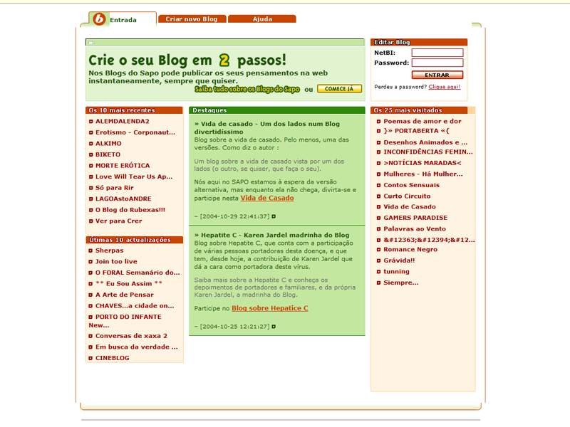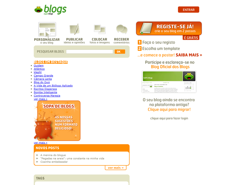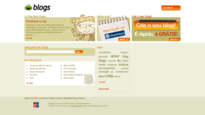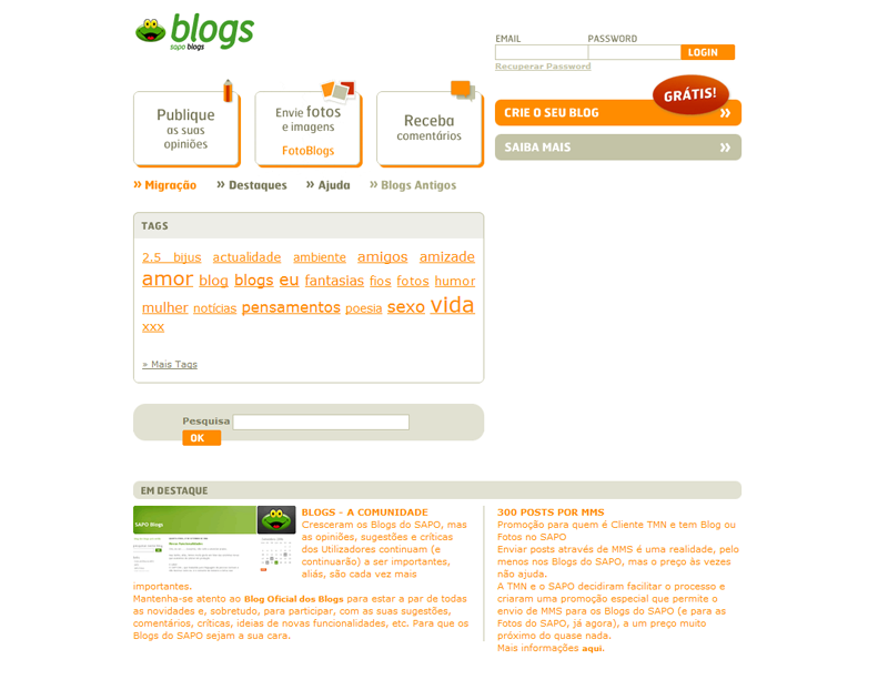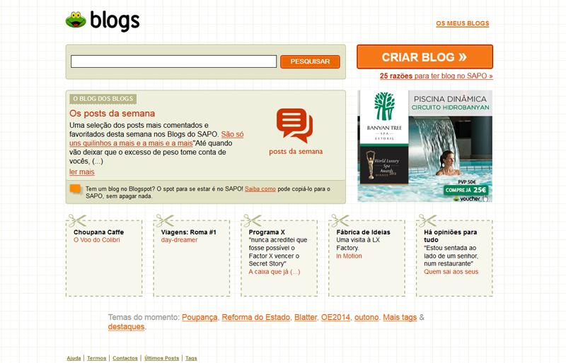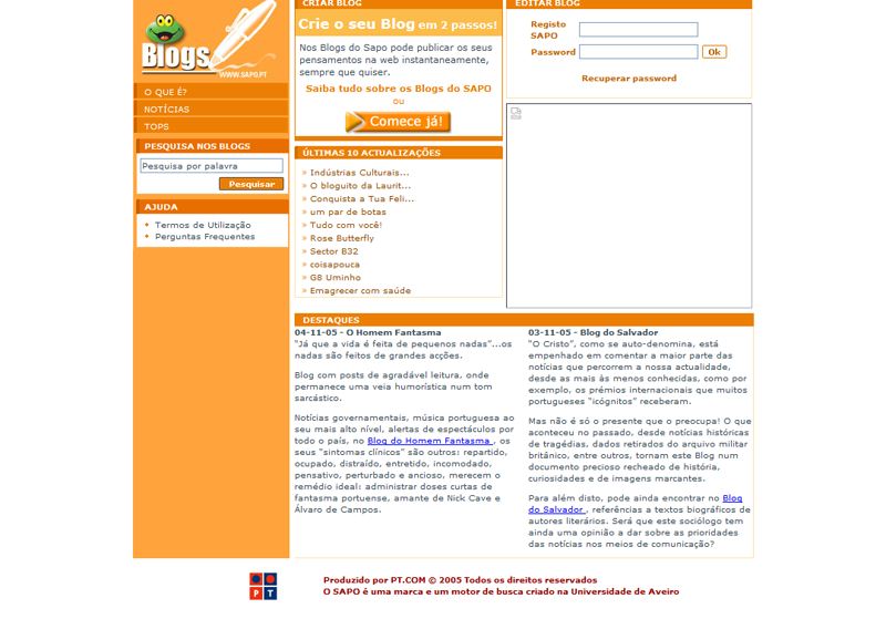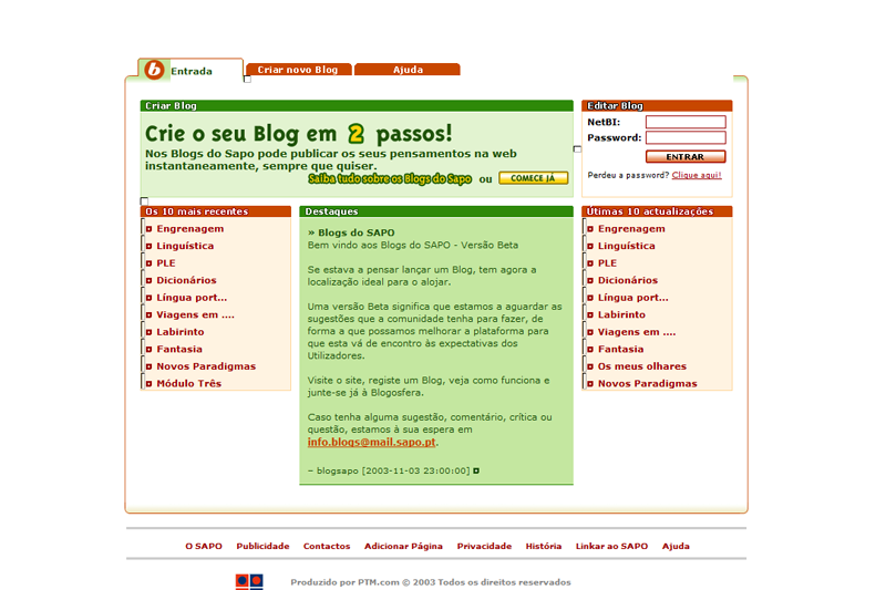 Para os mais nostálgicos, fica a evolução da homepage dos Blogs do SAPO ao longo dos anos, de 2003 até à atualidade.