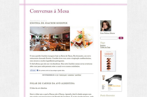 Não podíamos deixar de assinalar aqui a estreia nos blogs da Fátima Moura, autora de vários livros de gastronomia. O seu Conversas à Mesa só tem algumas semanas, mas já faz jus ao nome, reunindo histórias, receitas e descobertas do mundo da gastronomia.