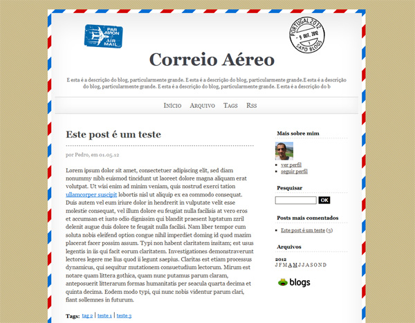 Por fim, temos um template para quem ainda gosta de enviar e receber cartas. O Correio Aéreo é para todos os nostálgicos das riscas azuis e vermelhas da correspondência aérea, com a vantagem que está isento de franquia.