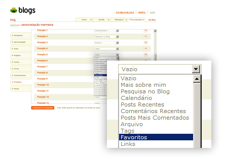 Por fim, se gostam de assinalar posts como Favoritos (nós aqui estamos viciados), e querem partilhá-los com os vossos leitores, também o podem fazer. Basta ir à Personalização Intermédia do vosso blog, ao separador Posições, e ativar o componente Favoritos.