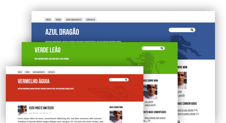 O novo template vem em três cores, a pensar nos três principais clubes portugueses: vermelho, verde e azul.