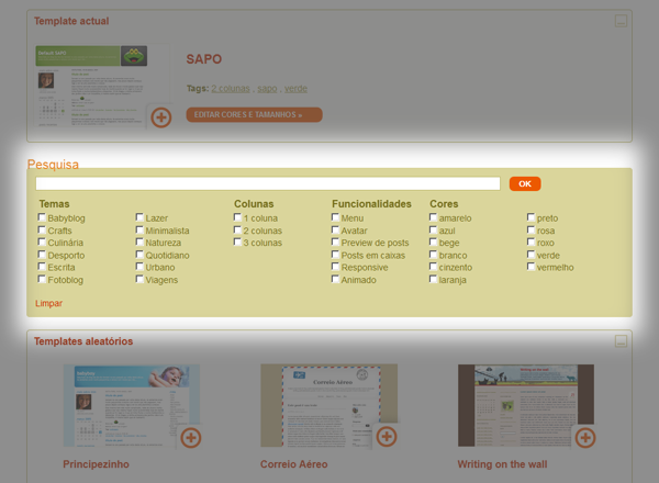 Remodelámos a nossa pesquisa de templates para que seja mais fácil descobrirem o template certo para o vosso blog.